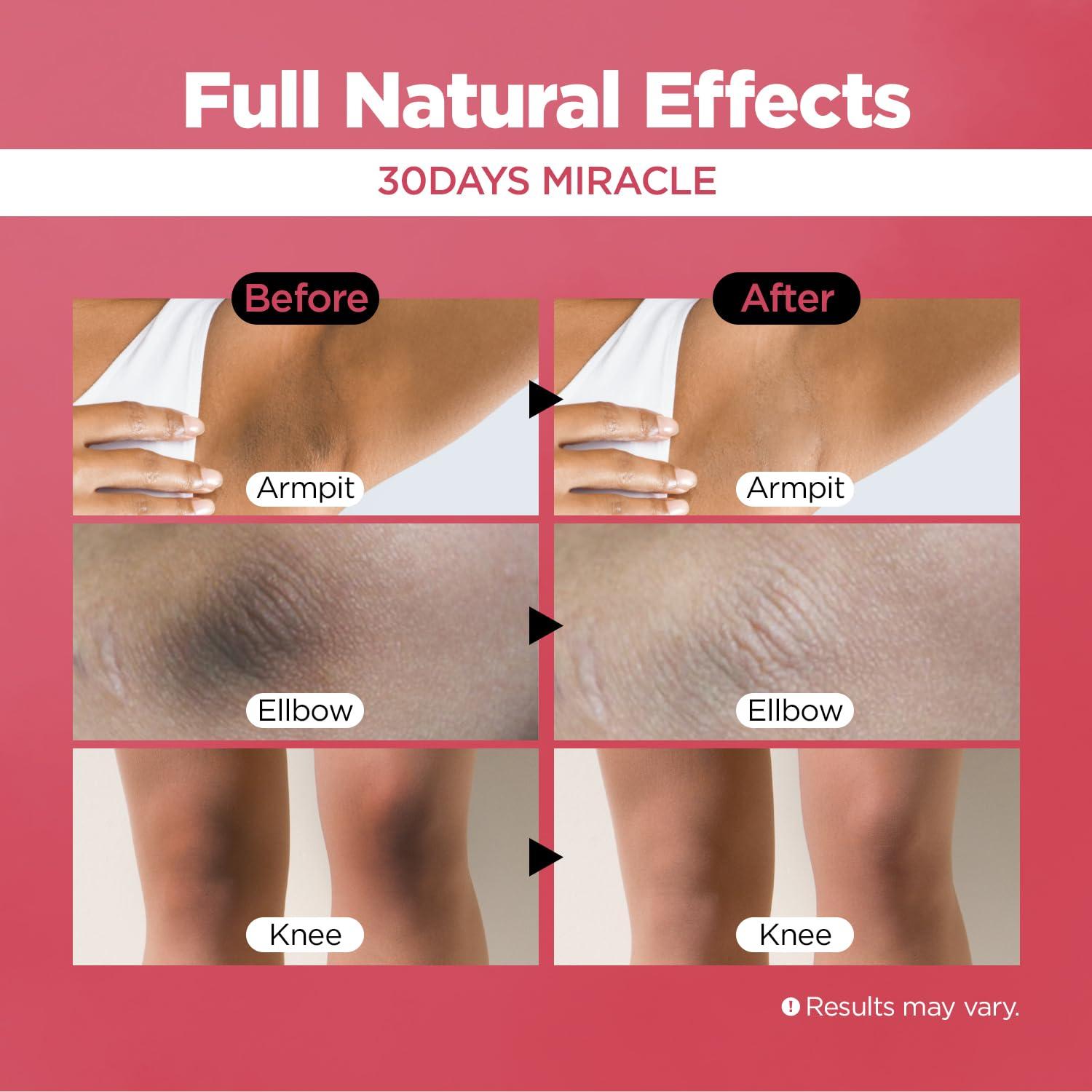 Made with active ingredients Niacinamide and Vitamin C, the cream gradually lightens dark spot pigmentation near the underarms, elbows, knees, and private areas to restore your natural skin tone for a fresher, cleaner look. Additionally, the cream provides nourishment through natural ingredients and a double power collagen boost to support skin health.