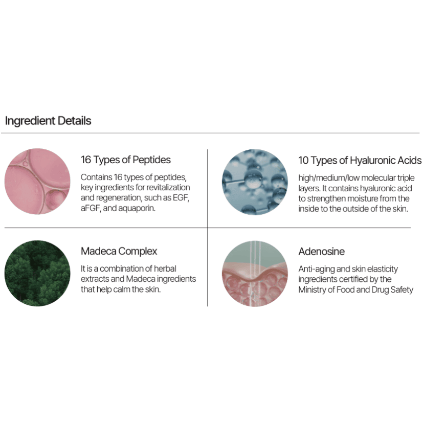 Specially formulated for post-treatment care, our cream is infused with healing and restorative properties, making it perfect for use after laser treatments, microneedling, and filler injections. The moisture-based formula is expertly crafted to provide powerful calming and regenerative effects, helping to soothe the skin and accelerate the recovery process. The Skincare Regeneration Cream is enriched with a potent blend of 16 types of peptides and 10 types of hyaluronic acids, alongside the innovative Madeca Complex. These ingredients work synergistically to promote a healthier, more youthful complexion, enhancing the skin’s natural healing process and boosting its overall resilience and vitality.
